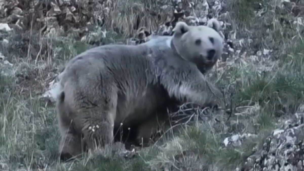 Sazlıpınar köyünde küçükbaş hayvan yetiştiriciliği yapan ve kendi sürüsüne çobanlık eden Mert Yılmaz, kış uykusuna yatmaya hazırlanan iki ayıyı görüntüledi.