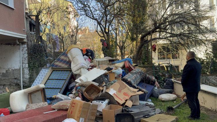 Eve giden polis, zabıta ve belediye temizlik ekipleri, dairenin ve apartmanın bahçesinin çöplerle dolu olduğunu gördü.