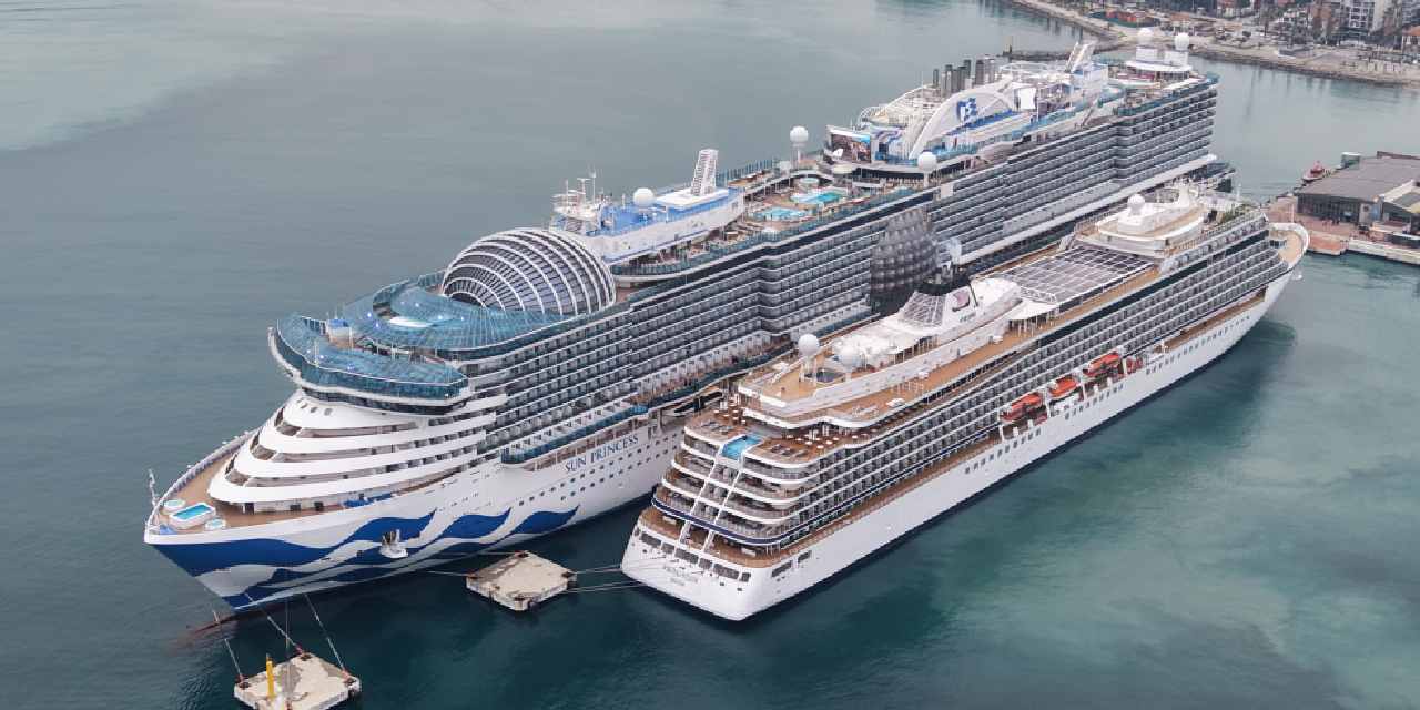Kuşadası Ege Port limanı, 18 Nisan 2026 tarihinde sabah saatlerinde iki büyük kruvaziyer gemisine ev sahipliği yaptı. Bermuda bayrağına sahip “Sun Princess” ile Norveç bayrağı taşıyan “Viking Vesta”, limana yanaşarak toplamda 5.297 turistin karaya çıkmasını sağladı. Gelen yolcuların çoğu ABD vatandaşlarından oluşurken, bir kısmı tur programı dahilinde İzmir’in Selçuk ilçesinde yer alan tarihi Efes Antik Kenti ve Meryem Ana Evi’ni ziyaret etti. Tur programına katılmayan diğer yolcular ise Kuşadası’nın canlı şehir merkezinde alışveriş yapmayı tercih etti.