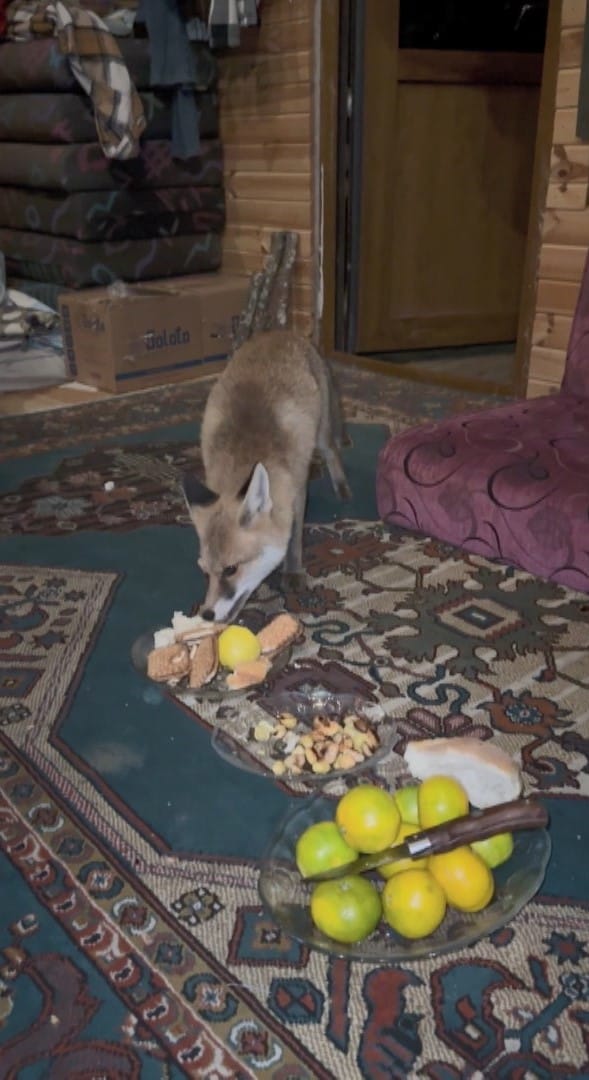 Bu güven ilişkisi ilerledikçe tilkinin davranışları da değişti. Sık sık barakayı ziyaret etmeye başlayan tilki, bir süre sonra tedirginliğini atarak evin içine kadar girmeye başladı. Karslıoğlu, tabaklara koyduğu ekmek, bisküvi, meyve ve et ürünlerini yiyen tilkinin o anlarını cep telefonu kamerasıyla kayıt altına aldı.