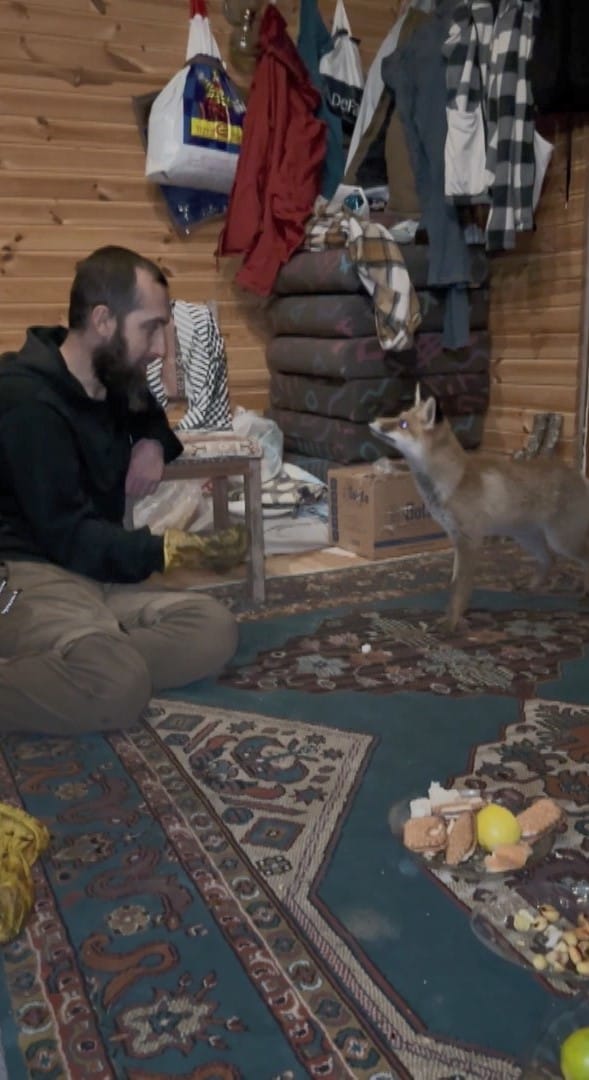 “Yaklaşık 1 ay önce barakanın camından gördüm. Dışarıya çıkıp kendisine ekmek attım. Ondan sonra bize yaklaşmaya başladı, evin içerisine girdi, tabaklarımızdan yemeye başladı. 2-3 günde bir kendisine yiyecek atıyorum, gelip alıp gidiyor. Ekmeği ve bisküviyi çok seviyor ancak kemik ve eti daha çok tercih ediyor. İlk zamanlar çok tedirgindi, şimdi daha samimi oldu.”